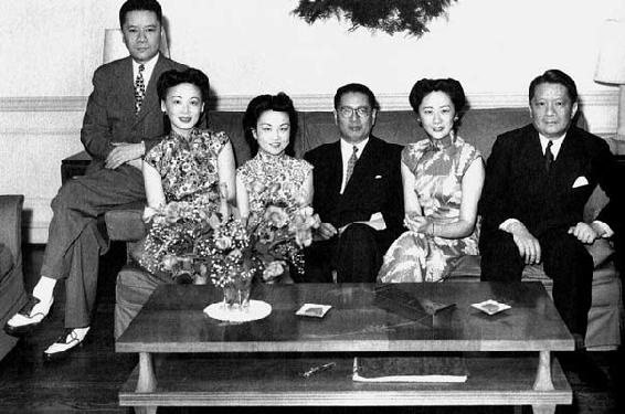 从左至右:宋子安夫妇、宋子文夫妇与宋子良夫妇,1942年在华盛顿过圣诞节