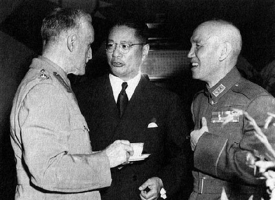 1944年9月,宋子文(中)、蒋介石和赫尔利在重庆