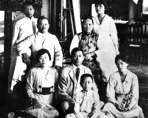 1917年,宋氏家族的全家福。前排为宋子安,第二排左起为宋蔼龄、宋子文、宋庆龄,后排左起为宋子良、宋耀如、倪桂珍、宋美龄