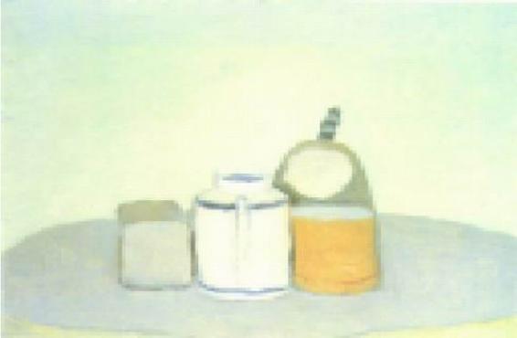 莫兰迪的静观之象在他笔下的呈现被落实为一种渐近抽象的写意,越到他艺术生涯的后期越见明显,成就了一种具象的抽象化。如果说当代的艺术家们如超现实主义者是试图在其超越现实的视觉表达中寻找具象与抽象的有机结合的话,莫兰迪的抽象化的具象表达,却显得不像超现实主义者穷尽心思的那份刻意。一切的变化显得渐进而自然。莫兰迪自己对此有过一番话:“没有什么比我们现时所看到的更抽象,更不真实了。作为人,我们知道我们所有能看见的真实世界,会如我们看到的和了解的那样真实地存在。当然事物是存在的,但是没有它们自己本身的意义,如我们所加诸于他们身上的。我们只能知道杯子是杯子,树是树。”(12)
