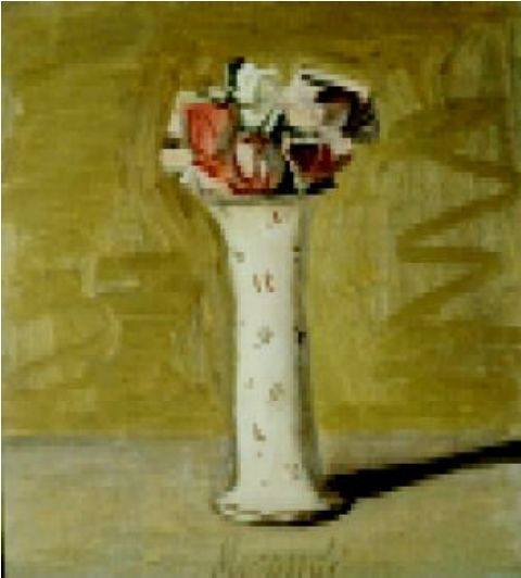 在静物和风景之外,莫兰迪表现得较多的主题之一,还有对于花卉的创作,虽数量不是太多,但却贯穿其创作的一生,在各种媒介上都有所体现,素描、版画,还有油画。这些被表现的花卉大都以一种安静的态度插于花瓶之中,莫兰迪期望他的花卉的表现“宛若在梦幻的夜晚中开放。”莫兰迪的瓶花在约束的矜持之中展现的是一种尊重、含蓄而带着距离,花的意趣盈然在适可而止中显示了艺术的自尊。