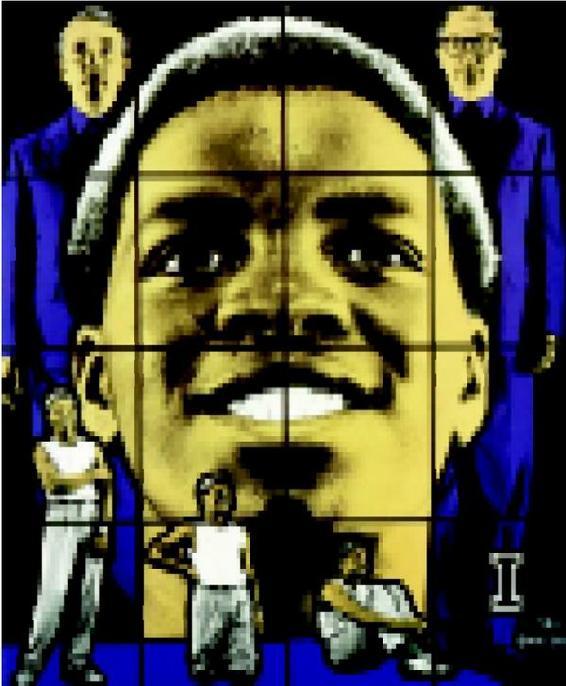 巴斯克雅(1960—1988)是位天才艺术家,他于1970年代末期开始了涂鸦生涯。最初他是一个二人组合的成员之一,他们使用“SAMO”作为笔名在纽约市区的墙上涂抹带有神秘色彩的句子。巴斯克雅的画由同他个人生活、黑人历史以及流行文化相关的图案和文字构成。1982末到1985年他所作的作品,大部分都有手工制作的粗糙的担架,包含非洲和拉美渊源——与画家的种族身份相关,历史事件、画家所认同的与他同时代的黑人形象,与黑人文化相等的符号和标志。除了在描绘、色彩和构图方面,他最大的天赋也许就在于他具有某种生就的、不可传授的感觉,这使得他懂得如何平衡原始风格与圆熟手法、直觉与控制、智慧与野性之间相互矛盾的力量。他的作品表达的思想也正是涂鸦艺术家们所追求的方向:表达真实生活的艺术,艺术就在生活之中。