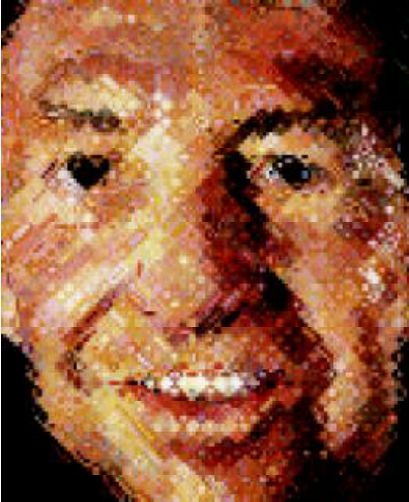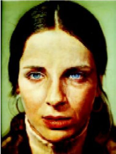 查克·克洛斯(Chuck Close,1940— ),他曾就学于华盛顿耶鲁大学、维也纳造型艺术学院。作为照相写实主义的一位代表人物,其早期作品都是照相式的巨幅男女肖像,他的注意力不在于捕捉照片上的人物性格特征,而在于如何将这种照片移植到画面上去的绘制方法,逼真程度连每一个毛孔都画了出来,整幅作品画出了照相机都无法表现的细节,他的一幅《大自画像》的作品,作者蓬头垢面嘴里叼着烟,头微抬,眼睛俯视前方,好像是目空一切的感觉,通过简单的画面表现出了很多内在的东西。他的肖像完全是照片的复制,不光是细致精确到极点,而且尺度非常大,作品《琳达》,画面是274.3×213.4cm,他将照片放得极大,通常没有表情,这种超乎寻常的技法创造了一个刻画精细而又尺幅巨大的肖像,远看逼真,近看局部却很抽象,不真实,他用逼真的画面揭示出一个真实的虚幻。这些直接而又集中的人像作品似乎不仅继承了沃霍尔给玛丽莲·梦露和贾克林·肯尼迪所作的肖像的风格,也借鉴了马克·罗斯科以人像为主体的抽象艺术画法。