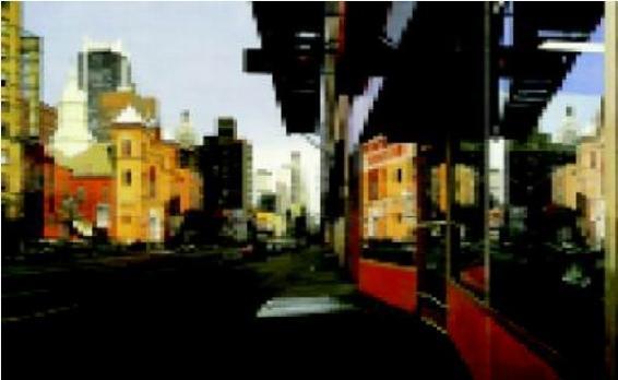理查德·埃斯蒂斯(Richard Estes),最富有才华的纽约画家。埃斯蒂斯继承了风景画家的传统使命,他乐于把两三张或更多些的照片结合在一起,参照这些照片,用丙烯淡彩画出,用油彩覆盖草图。他的作品取材于照片,只不过加以组合和剪辑,以便获得艺术家需要的形象。作品主要表现纽约的街道或地铁站,特别是玻璃、光亮的金属和塑料等材料。画家感兴趣的是映像和透过透明物所看到的互相交叉、重迭,有互不相容的东西。他在画面上进行字母排列,有时观众可以直接按顺序拼读,有时则需倒序才能看出意思。在他的画面上似乎包含着一种抽象的几何形式的相互作用。埃斯蒂斯的街景作品也是取材于照片,只不过经过了剪辑并加以组合,以便获得艺术家所需要的形象,这种方法直到今天还为大多数画家所采用。