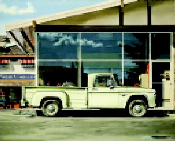 拉尔夫·戈因斯 (Ralph Goings),与克洛斯具有同样代表性的照相写实主义画家之一。他的作品题材更注意社会、文化性,不仅仅是描绘肖像或者明信片,他更加注意作品所产生的联想和隐喻性的特点。1971年前后,他曾经创作了一系列的背景都是美国单调的日常都市街景的小卡车作品。代表作《金色大道》,画面是一辆旧道奇小货车停在一个维修站门口,背景正是最普通、最单调的美国小市镇街景,这也正是美国社会面貌和文化面貌的真实写照。这种以平庸的真实的方式反映社会本质面貌的方法,是在莫利和克洛斯的作品中所看不到的,过分的平淡无奇似乎是专门为孤寂环境中的人设计的,这也是戈因斯作品最突出的特征。