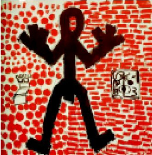 彭克(Penok)是一位自学成才的画家,他常常以一个简化为符号的普通人物——一个棍形人物为主要表现形式,单个或成组的配置于有单纯色背景的挂毯或蜡染似的图案上,背景与人物相得益彰。彭克在他的作品中试图以这个棍形人物加上象形文字、控制论符号、涂鸦痕迹、人类学和民俗学意象的一整套相融的语汇,来表达他个人与公众所关心的事情,诸如由于封锁交往所带来的恐怖的暴力,集体社会中个人独断专行的问题等等,他的作品极具象征性。