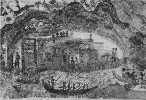 圣托里尼,公元前1500年,希腊圣托里尼岛(古称希拉)“海军上将之家”壁画残片