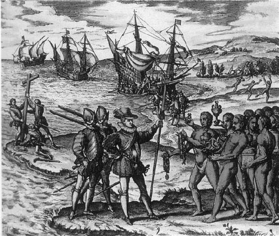 众所周知,哥伦布率领三艘帆船向西航行并未能到达亚洲,因为他们途中遇到了未曾预料的阻隔,那就是人们当时尚不知晓的美洲。哥伦布于1492年8月3日起航,于10月12日抵达巴哈马群岛的一座小岛,他将之命名为“圣萨尔瓦多”。他完全没有意识到,他到达的是一个新大陆,而误以为自己到达了“印度”(当时欧洲人对亚洲地理并无清晰的认识,往往用“印度”“中国”指代“亚洲”),因而把当地人称为“印度人”(中文译名为“印第安人”,但在欧洲语言中,则与印度的“印度人”无异)。当人们终于明白,那里是欧、亚、非大陆之外的“第四大陆”时,一位德国地理学家却用曾给哥伦布航海提供过很大支持,后来同样参加了航海活动的佛罗伦萨商人阿美利哥·维斯普西的名字,将这片新大陆命名为“阿美利加”,即美洲。而哥伦布的名字只留给了美洲的一个国家哥伦比亚。