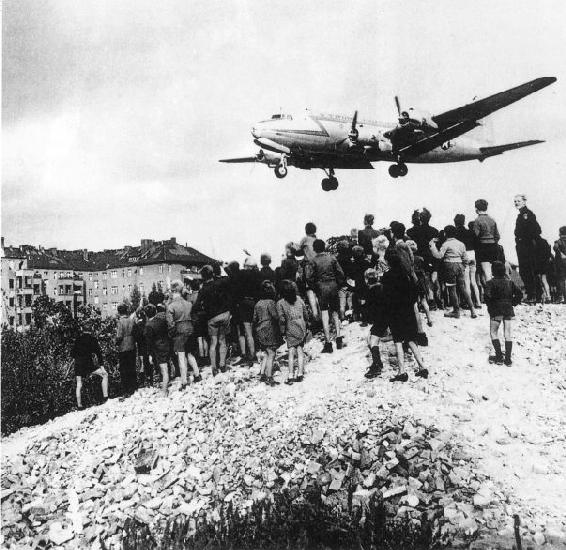 运载生活必须品的美军Donglas L-54飞机在滕珀尔霍夫机场降落