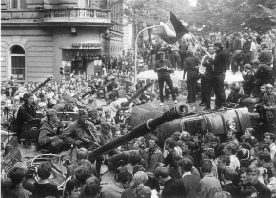捷克斯洛伐克民众与苏联军队在街头对峙