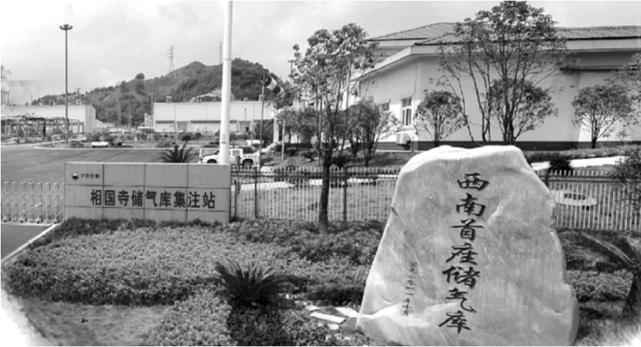 重庆渝北区有一个全国闻名的相国寺,该地区的天然气贮量已采出程度超过天然贮量的 91%,2010年不再采气,利用碳系气藏的空隙储存燃气,称之为相国寺地下贮气库,库容量42.6亿立方米,最大日注气量 1380万立方米,季节调峰最大日采气量 2855万立方米,是我国川渝地区一个重要极具特点的大型贮采两用库,见图91。