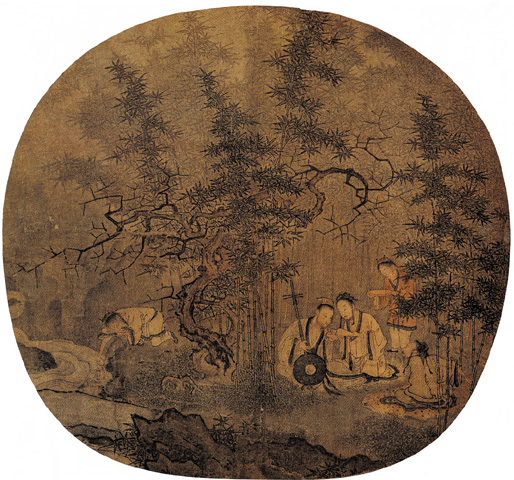 此图原载《四朝选藻册》(见《石渠宝笈续编》)。签题李唐作。按此图状人物甚工,但非李唐的作风。我们观李唐的《伯夷、叔齐采薇图》是那样的形象深刻,便显得此幅的纤弱了。故改题为无名氏作。