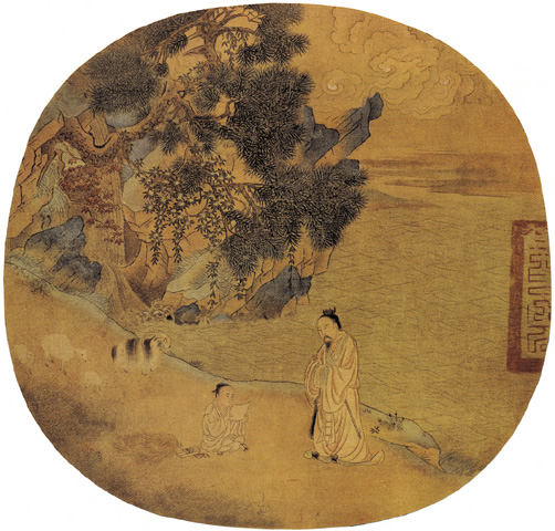 此图不知原载何册,也没有作者姓氏。但画法甚为高超,人物尤精。在描绘人物动态和神情方面,画家具有高超的技艺。黄初平,亦名皇初平,传说为晋丹溪人,15岁时家使牧羊于野,遇道士携至金华山石室中,四十余年。后其兄寻至山中,问羊安在?初平哎叱成羊。
