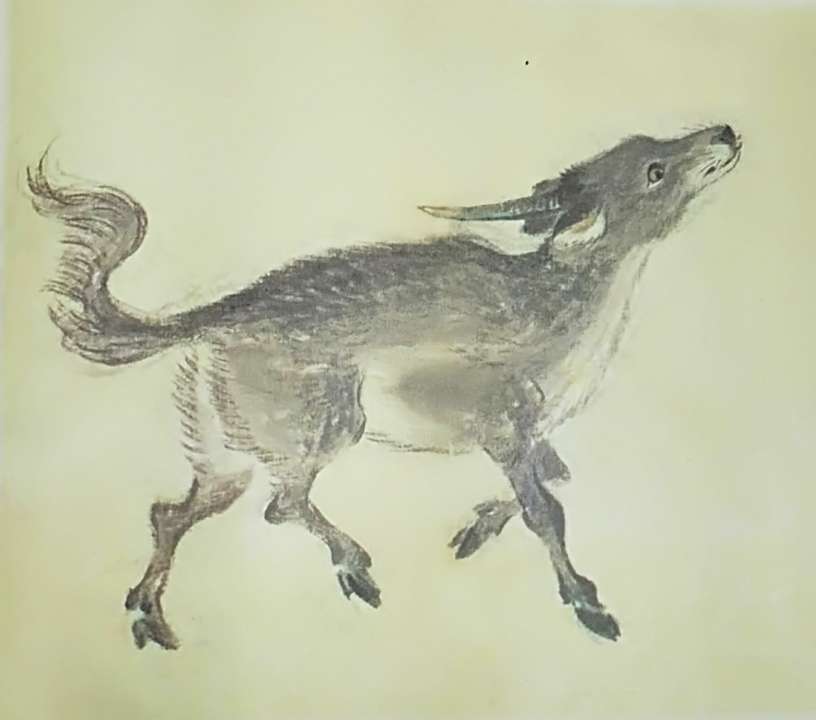 兕:《山海经》中记载:"兕在舜葬东,湘水南。其状如牛,苍黑,一角。" 兕样子像牛,通体青黑色,长着一只角 。