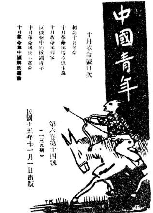 《中国青年》自1923年10月创刊起,从来不用封面图画,只用刊名题签。(据说多为刊物的主编邓中夏或恽代英、萧楚女等所书写。[1])可是,到1926年5月的第121期,突然破例地刊用了一张封面画。这期的《编辑以后》有如下一段告白: