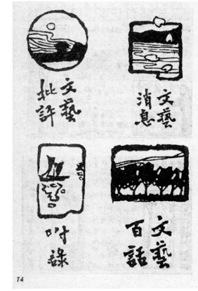 (二)绘画性强。乍一看李叔同的设计,有一种清新之感。他的设计,不是描出和涂出来的,更不是靠绘图工具描出的那种无生命的线和几何形。他不用刻版的点和线,而是讲究笔趣墨趣的生动性。例如《广东太平洋报》、《初等教育·女子教育》(图四)和《太平洋报》启事以及各种文艺消息、文艺批评题花(图五)等,都既是图案也像黑白画。说他设计图案也像在画画,并不过分,个人风格独特。