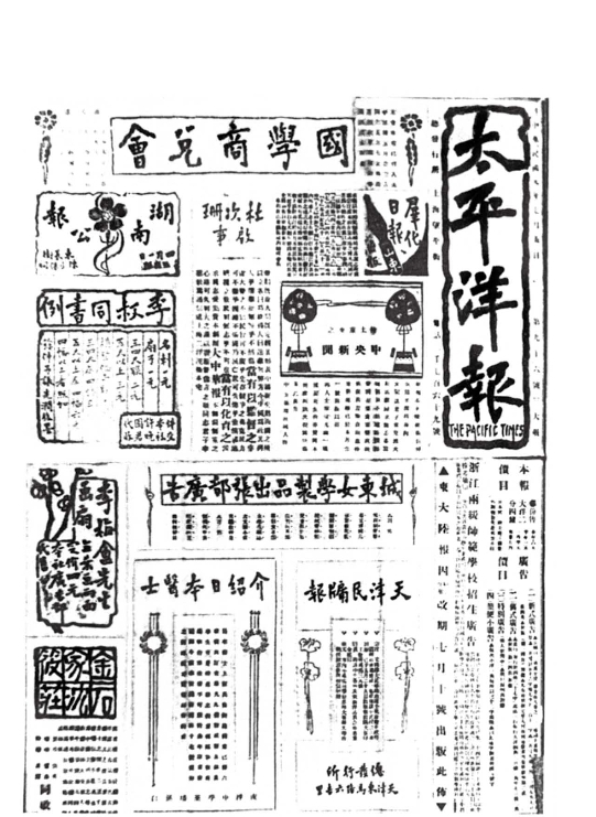 长期以来人们对李叔同的图画作品是否还存于人世已失去信心。近年,李叔同的佛门弟子,新加坡的广洽法师寄赠笔者一本《弘一大师永怀录》,细心展读之后,于一篇纪念文章中发现一个线索,即李叔同当年为《太平洋报》设计了大量广告画。这是个十分诱人的“信息”。经过多时的四处查询,终于找到了存世不多的《太平洋报》,发现了李叔同所设计的大量广告画,连同《太平洋报》报头也出自他的手笔。使人耳目一新,大开眼界,亲眼看到了这位先驱者所作贡献的又一个天地。