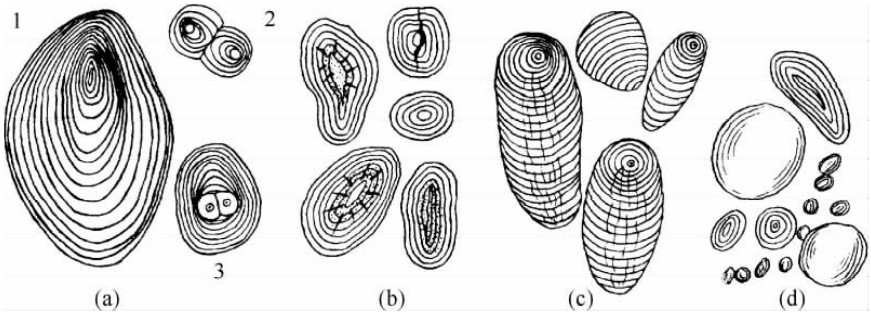 (a)马铃薯 (b)豌豆 (c)藕 (d)小麦1.单粒淀粉粒 2.复粒淀粉粒 3.半复粒淀粉粒