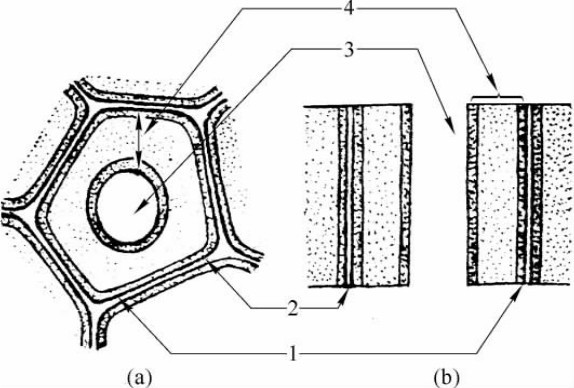 植物的细胞壁可分为三层结构:胞间层、初生壁和次生壁(图1-12)。