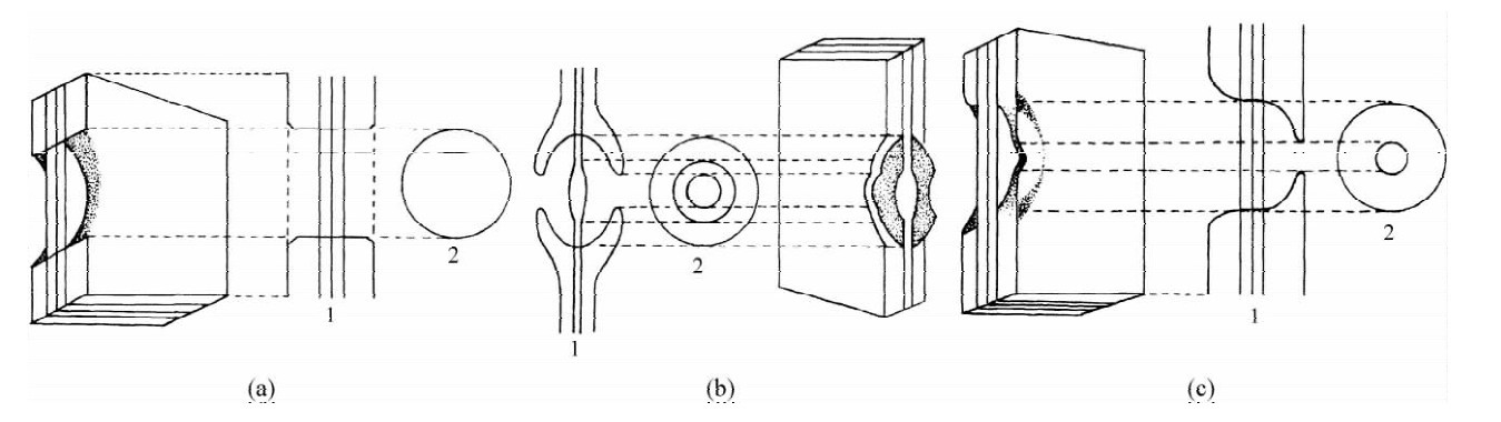 (a)单纹孔 (b)具缘纹孔 (c)半缘纹孔1.切面观 2.表面观