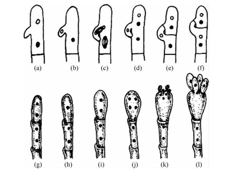 (a)~(f)锁状联合 (g)~(l)担子、担孢子的形成