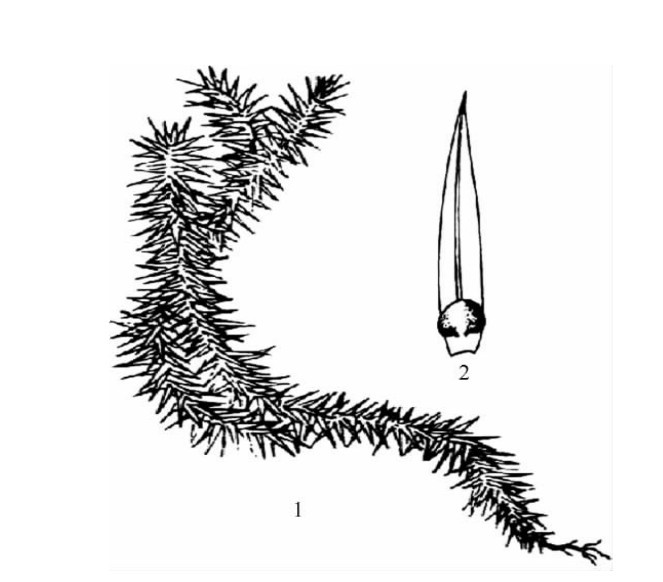 石杉(小杉兰)Huperzia selago(L.)Bernh.ex Schranket Mast.[Lycopodium selago L.]植株高12~20cm,黄绿色。茎直立或斜上,二歧式分枝。叶线状披针形,全缘;中脉较明显。孢子囊肾形,生于上部叶腋,黄褐色(图9-6)。分布于东北及陕西、四川、云南、新疆等省区。全草及孢子能祛风除湿、止血、续筋、消肿止痛。全草含有石杉碱甲等生物碱,可用于治疗早老性痴呆症。