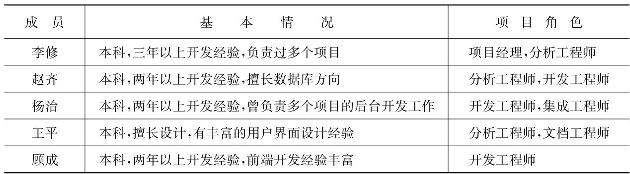 再采用列表(见表4-1)的方式说明团队成员的基本情况和承担的角色。