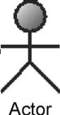 (1)参与者(actor):是位于系统外部、与系统具有交互的事物,可以是人、计算机系统或组织,例如教室管理员。需要注意的是参与者不是某一个具体的人、系统或组织的抽象,而是一类人、系统或者组织。在UML中,参与者的符号如图5-1所示。