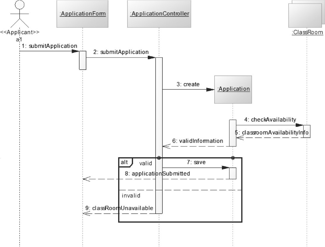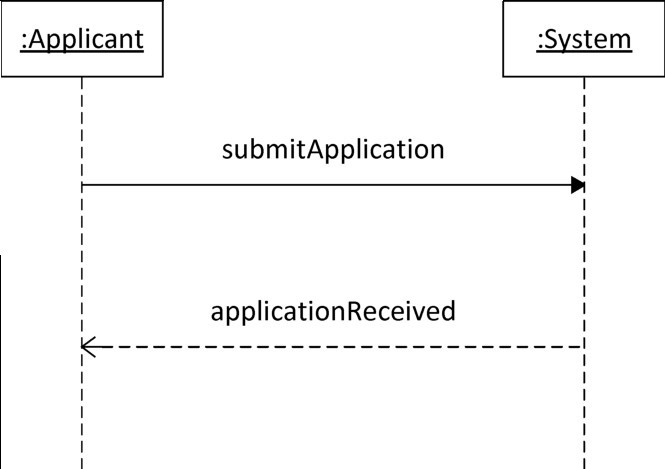 图6-3为一个顺序图的例子,针对的是系统消息submit Application()。