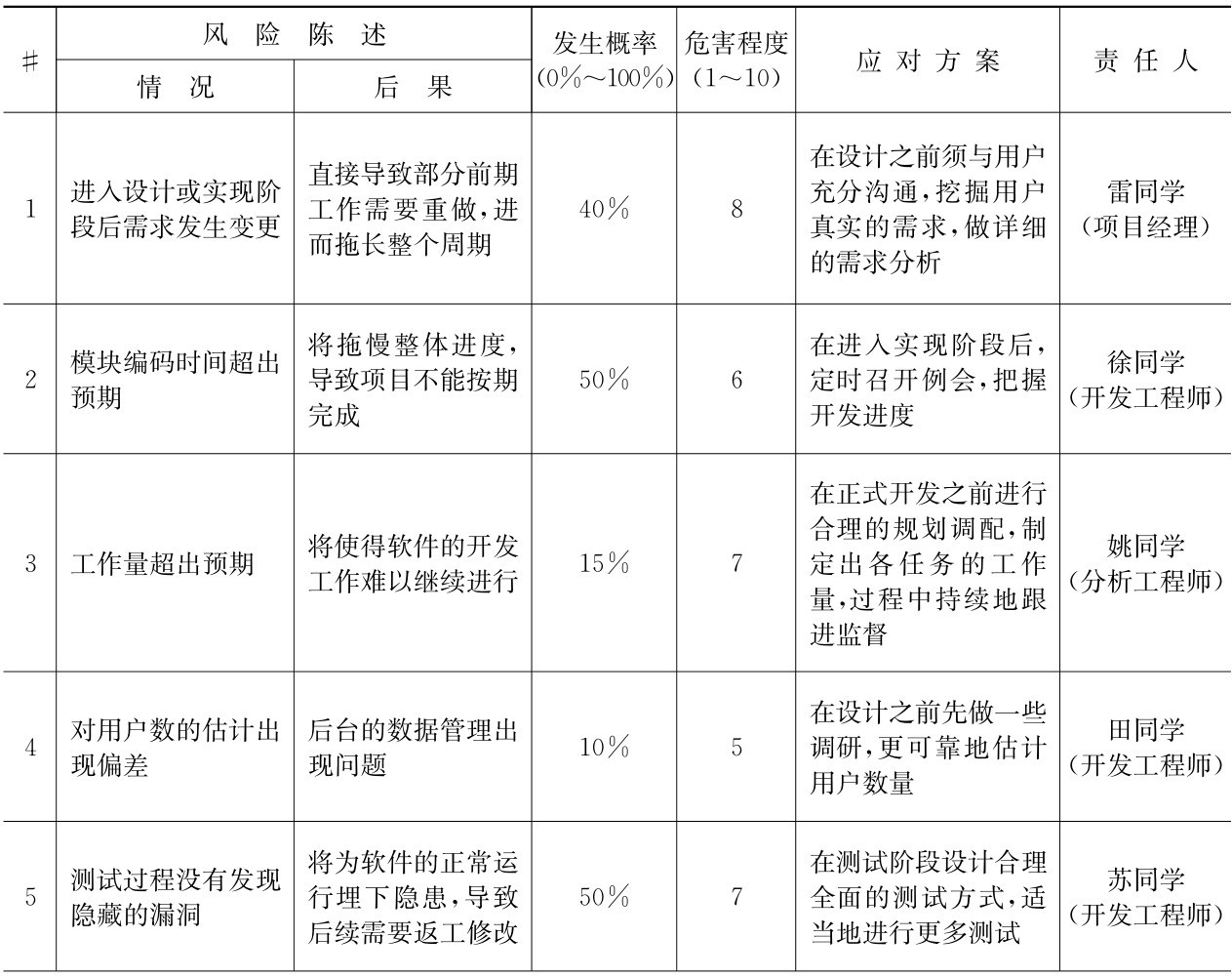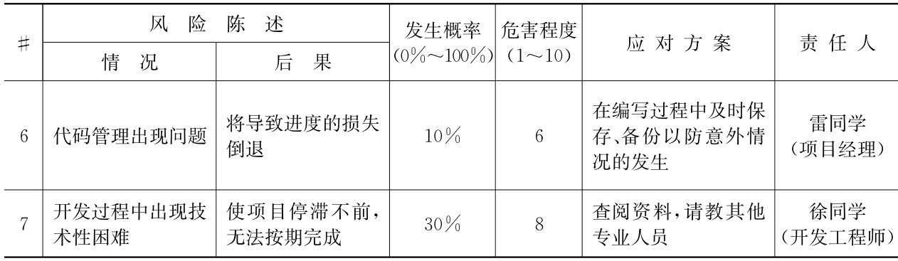 (5)开发过程中的计划、沟通和技术限制等。影响:耽误开发进度,延长开发时间,无法达到预期目标。