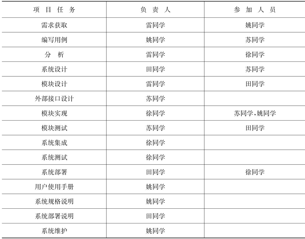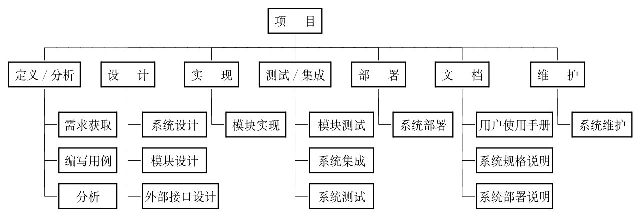 项目工作分解如图12-4所示,任务分配情况在表12-3中列出。
