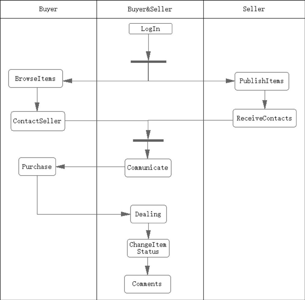 当前的二手商品交易系统是人工组织的,即由商贩或者店家通过较低的价格收购旧书或者生活用品,自行整理分类后运至学校门口进行小范围短时间的销售,价格并不统一,时间也不固定,规模小,效率低。