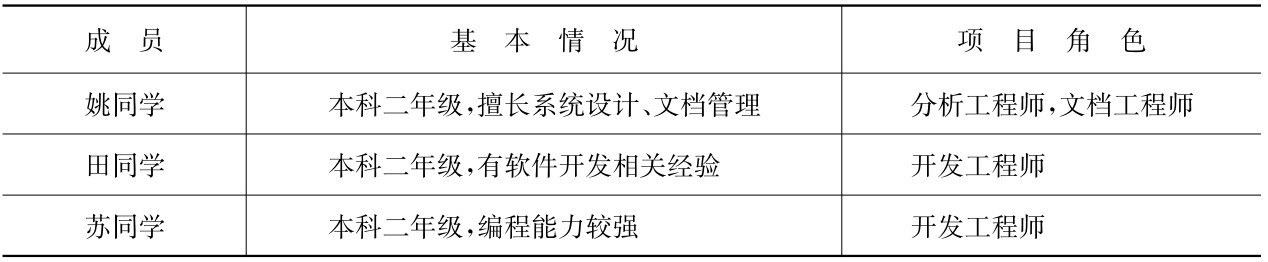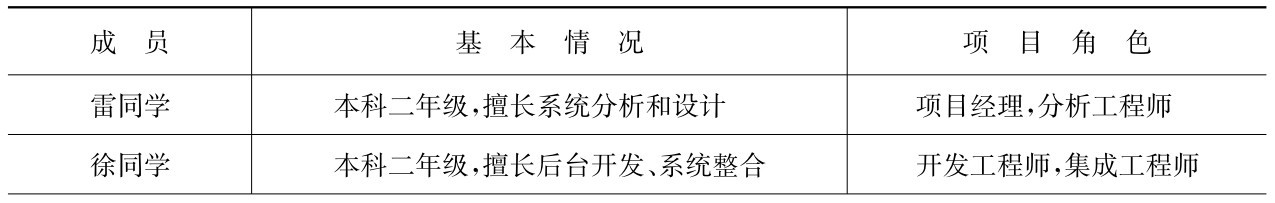 团队组织结构如图12-3所示,团队成员情况如表12-2所示。