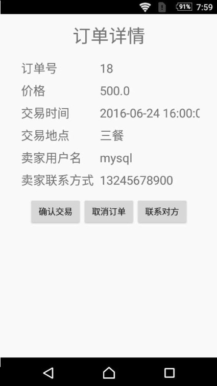 (16)联系对方:在订单详情页面,单击“联系”按钮,即可联系商品买方或卖方。