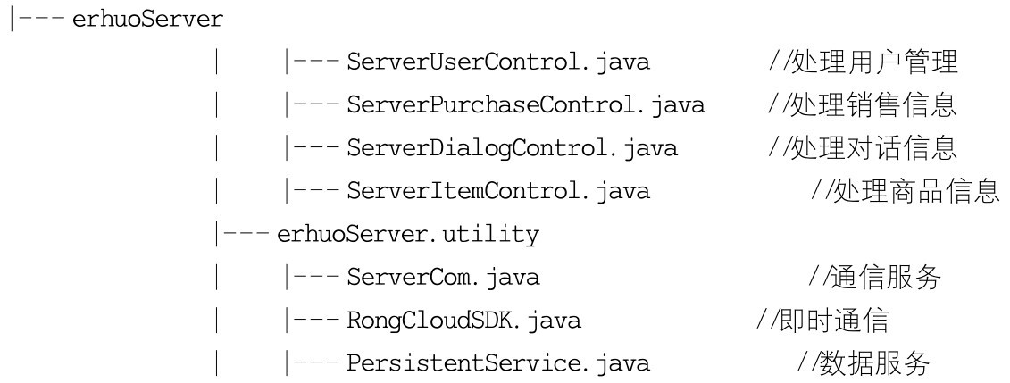 服务器端项目开发环境为Eclipse,服务器容器为Tomcat,文件夹名为erhuo Server,文件结构如下: