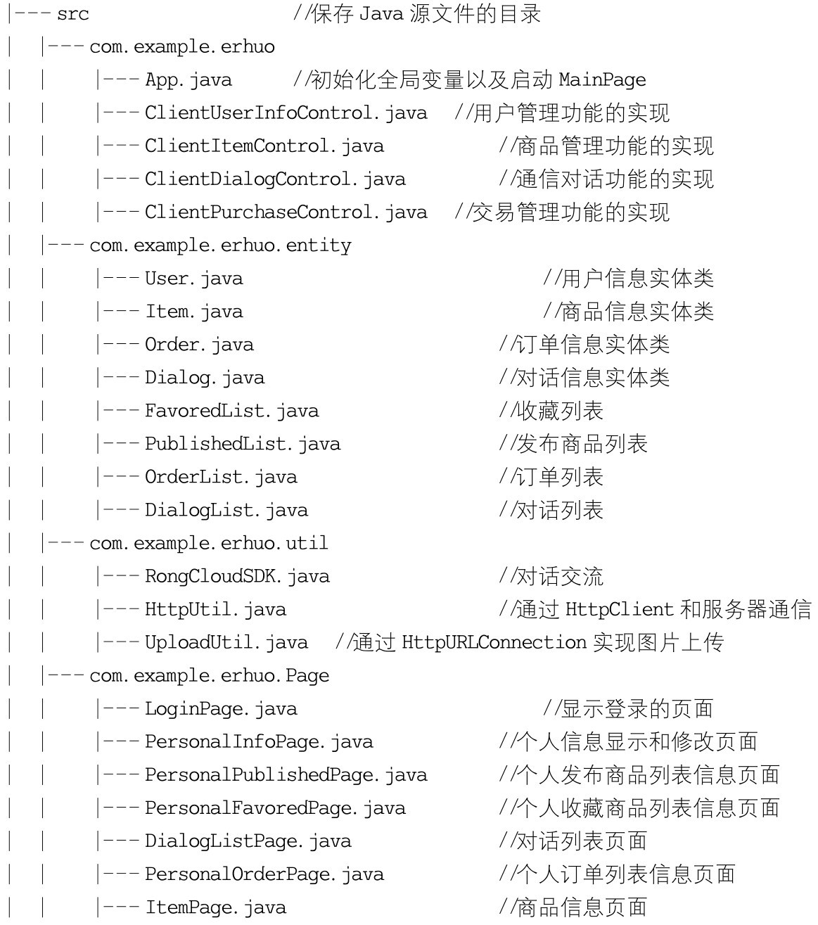 (1)Java源代码:Java源代码位于src文件夹下,大小为94.2k B,包名为com.example. erhuo。