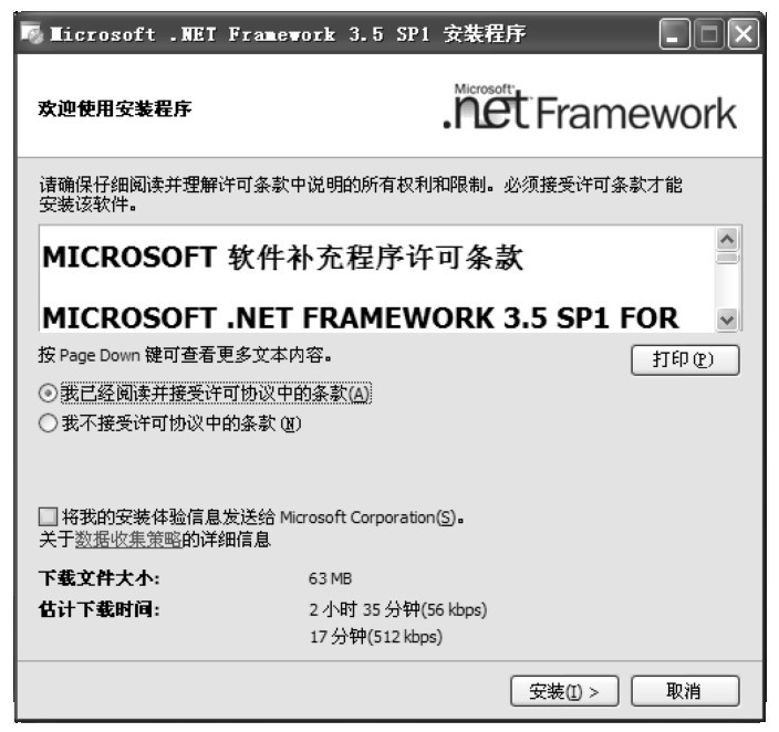 图1-2 .Microsoft.NET Framework3.5 SP1安装许可条款界面