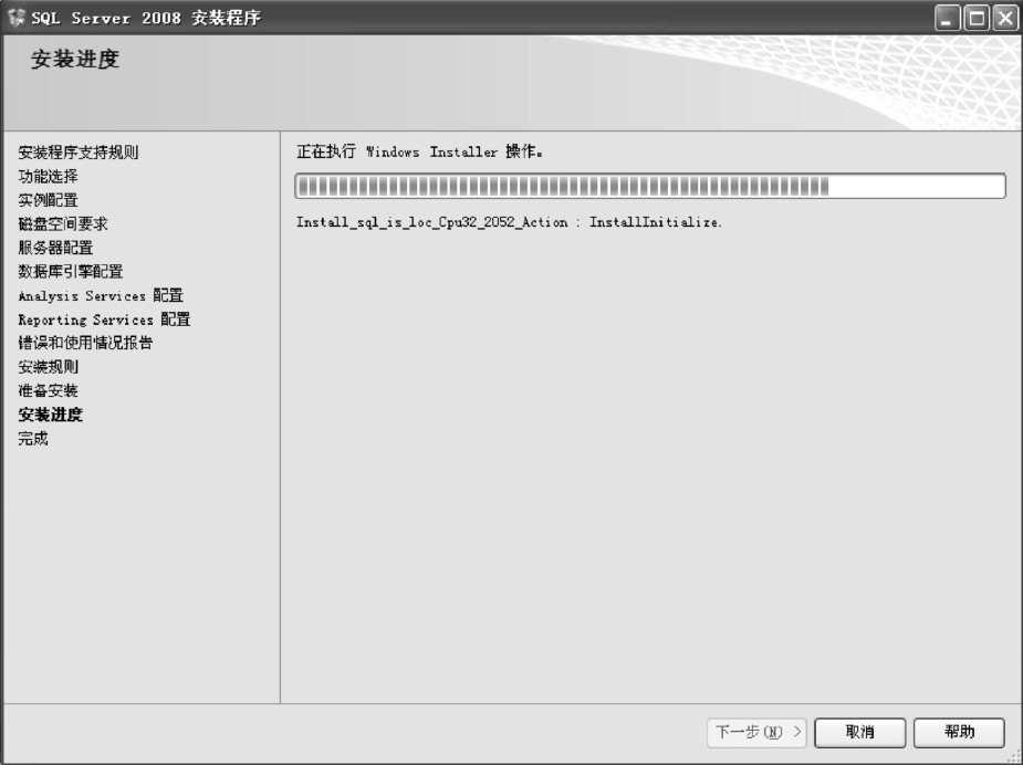 (17)进入“安装进度”界面,显示安装过程中的进度,并监视安装过程中的状态,如图1-22所示。