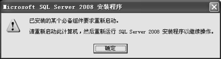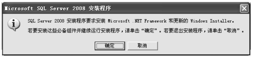 (1)双击安装盘中的安装文件setup.exe,出现“MicrosofT-SQL Server2008安装程序”对话框,单击“确定”按钮,如图1-1所示。