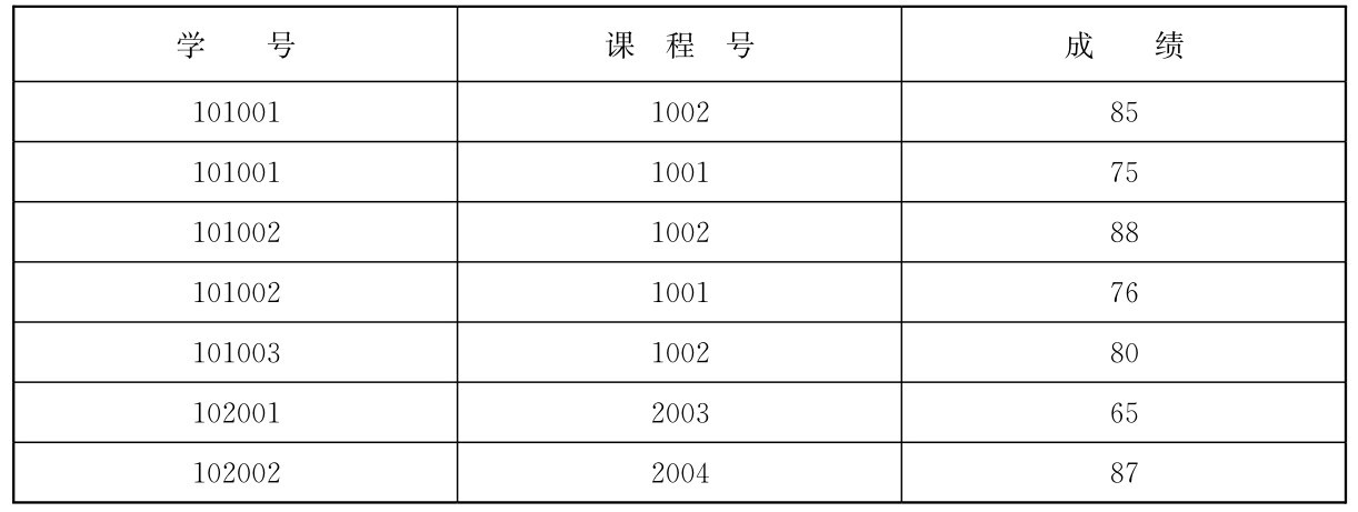 选课关系:Select Course(学号,课程号,成绩),如表2-5所示。