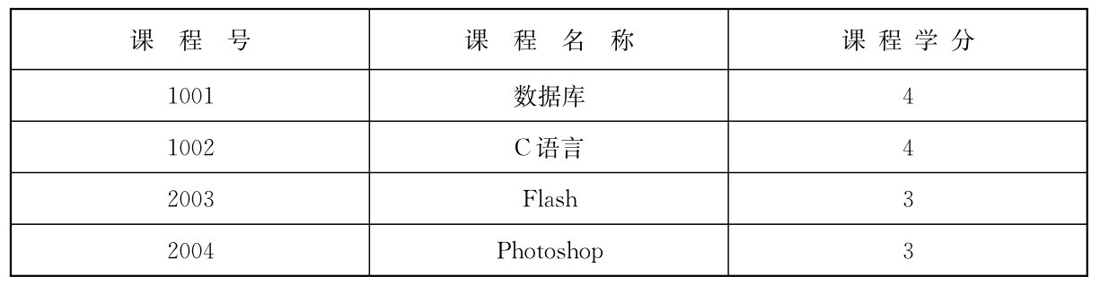 课程表:Course(课程号,课程名称,学分),如表2-4所示。