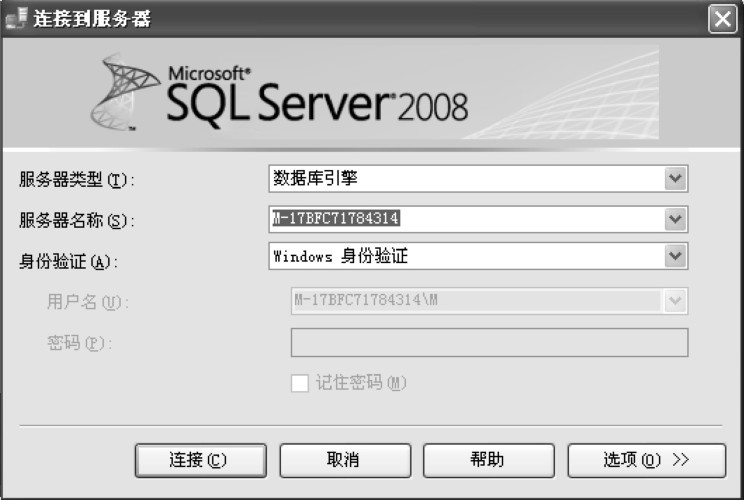 (1)选择“开始”→“所有程序”→MicrosofT-SQL Server2008→SQL Server Management Studio命令,启动SQL Server Management Studio,出现“连接到服务器”对话框,单击“连接”按钮,如图3-1所示。