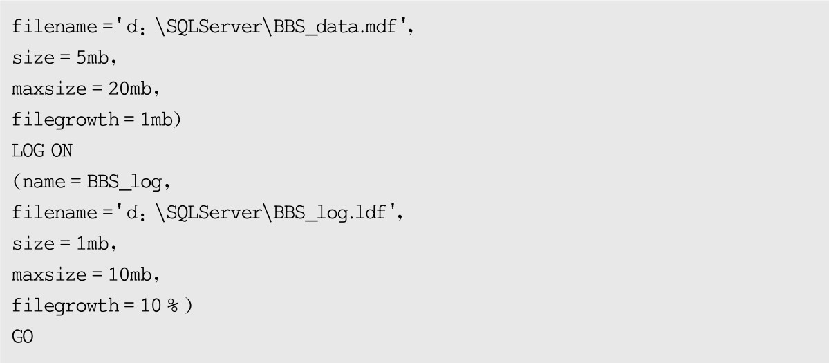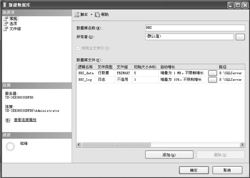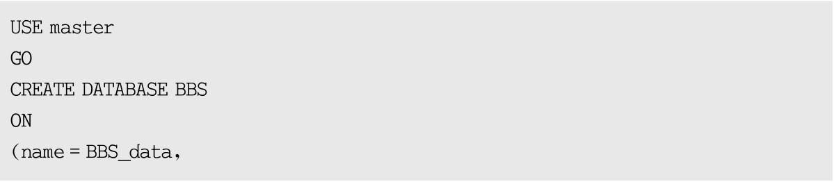 按钮执行以上T-SQL代码,完成BBS数据库的创建。