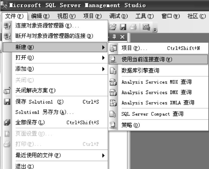按钮,或者执行“文件”→“新建”→“使用当前连接查询”命令建立一个新的查询。