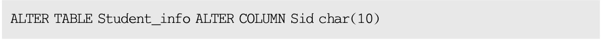 【例4-6】考虑到学号的长度设置得不太合理,需要将其长度更改为10,类型仍为char。