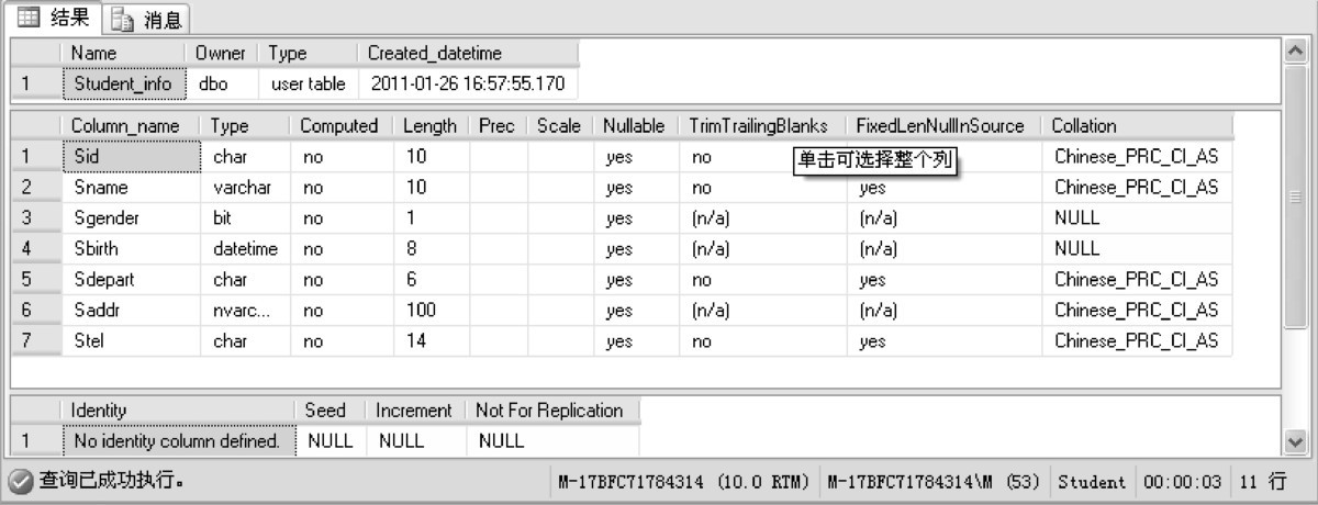 使用存储过程sp_help可以查看表的相关信息,基本语句格式如下: