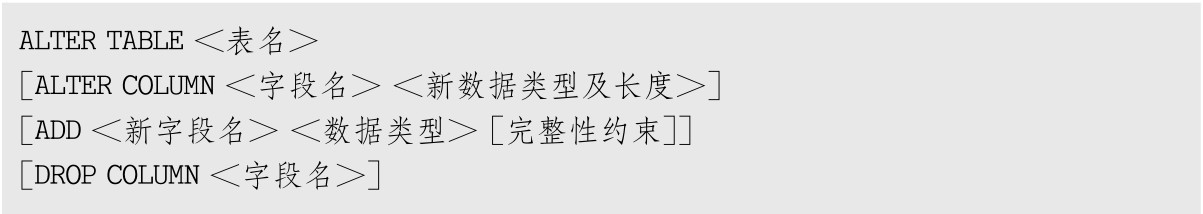 通过对以上3个应用的操作,总结出T-SQL语句修改表的基本语句格式如下: