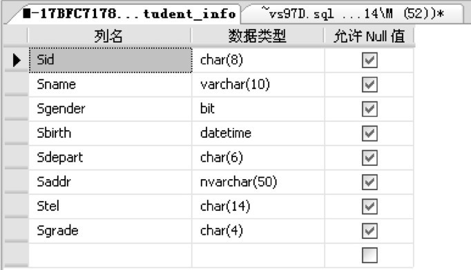 完成操作后,打开Student_info查看其表的详细设计信息,如图4-15所示。