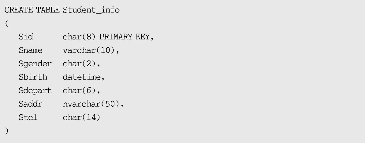 更普遍的使用方法是在创建Student_info表时,就把主键设置写进T-SQL代码中: