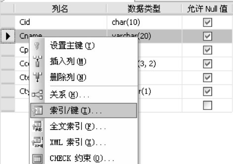 按钮,弹出“索引列”对话框,在“列名”的下拉列表中选择要设置唯一键的Cname字段,单击“确定”按钮,如图430所示。